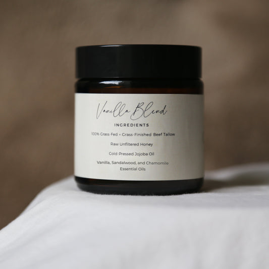 Discover the power of whipped tallow balm—a deeply nourishing, non-toxic skincare solution handcrafted for sensitive, dry, and eczema-prone skin. Made with grass-fed and finished beef tallow, raw unfiltered honey, organic jojoba oil, and therapeutic-grade essential oils, each balm is designed to mimic the natural oils your skin already produces—so it can absorb, heal, and glow.